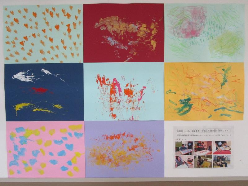 美術の時間に9月17日(水)の津軽三味線鑑賞会の演奏を聴きながら、曲のイメージをモダンテクニックの手法を使って表現しました。
