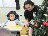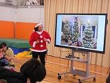 ALTのジャスミン先生と外国語の学習をしました。最初に、ジャスミン先生がアメリカのクリスマスについて写真を示しながら教えてくれました。その後、身の回りの素材を実際に触りながら、英語での名称を確認し、発音や文字などについても学習しました。身の回りの物の感触を確かめるクイズでは、たくさん正解してとても盛り上がりました。クイズに正解してゲットしたオーナメントは、みんなでもみの木に飾りつけして教室を鮮やかに彩りました。
