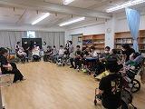 9月27日(土)ねむの会ファミリーコーラスのみなさんをお迎えして、手話コーラスのミニコンサートを開催しました。児童生徒も楽器を鳴らして、一緒に音楽を楽しんでいました。後半は、全員で音楽に合わせたパラシュート遊びやダンス「マイムマイム」で盛り上がりました。最後は、ねむの会ファミリーコーラスのみなさんへのお礼も込めてみんなで「虹」を歌って…親子で和やかなひとときを満喫しました。