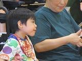 最初に「津軽じょんから節旧節」を聴いた後、「弾き方、調弦(二上がり)、音の強弱、スクイ、ハジキ、押しばち」について教えていただきました。また、ばちを持って津軽三味線を鳴らすという、貴重な体験をすることができました。最後は、津軽三味線とトーンチャイムとディスクベルで、「さくら さくら」の合奏をしました。