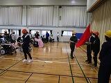 小学部のみんなで集まり、お互いに自己紹介をしたのち、児童会会長の歓迎の挨拶がありました。その後、ダンス「マイム・マイム」を一緒に踊りました。