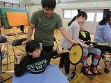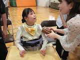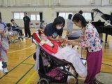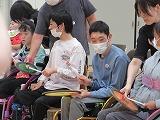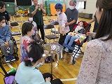ワークショップでは、楽器に触れて音を出したり、楽器を身体にくっつけて振動を感じたりした後、演奏者とアンサンブルを楽しみました。